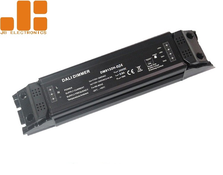 The DM9132H-D24 is a constant voltage DC24V output DALI dimmer driver of 18W DALI driver series. With the help of DALI dimmer driver, you can realize a smart control of DALI lighting controlling system. You can also use a simple DALI touch dimmer to dim your LED lights in small projects.